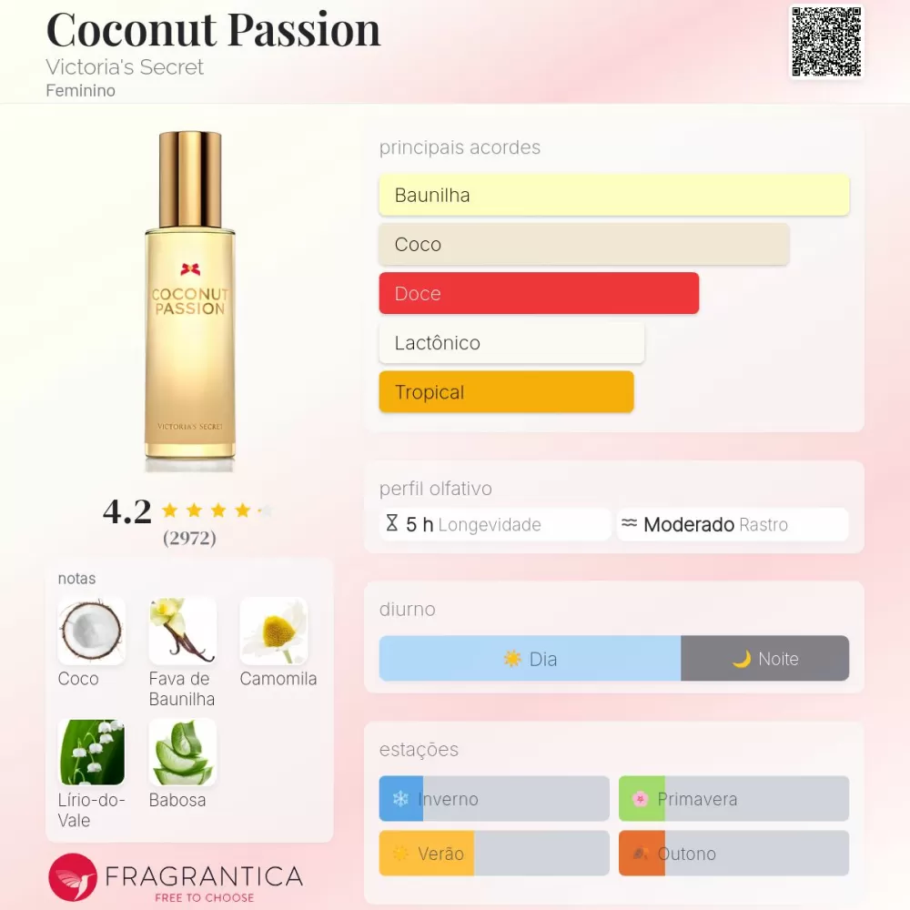 Perfume leve e refrescante, perfeito para quem curte um cheiro de verão com toque tropical e doce de coco.