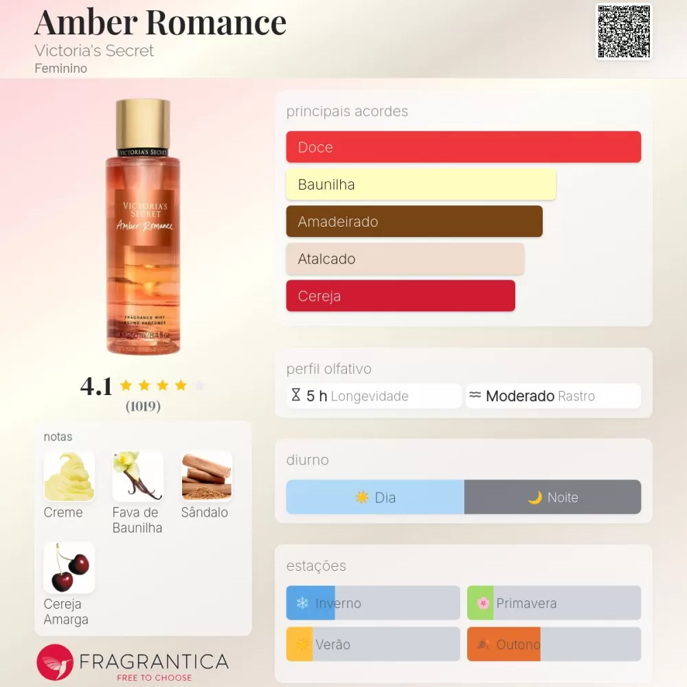 Notas principais: Âmbar, baunilha, almíscar, rosa e sândalo