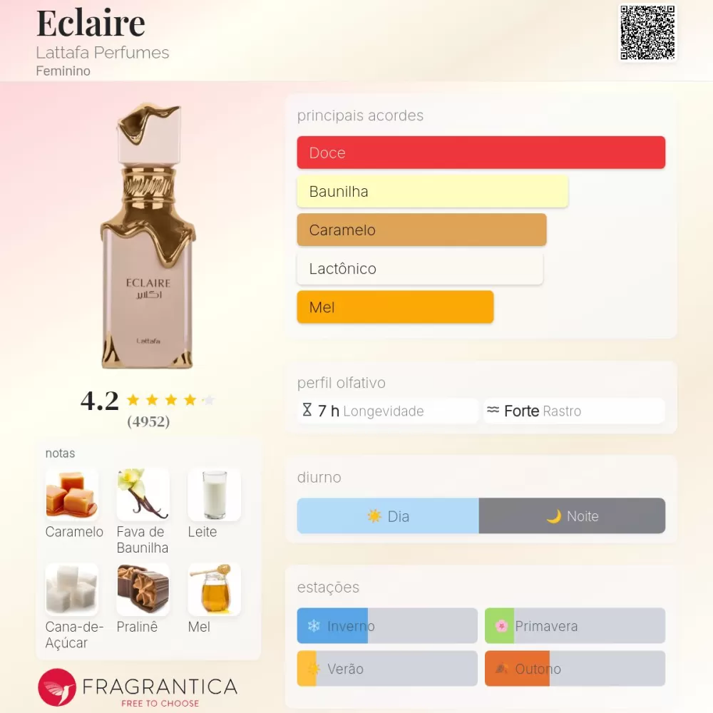✨ Eclaire é uma fragrância gourmand cremosa e envolvente, marcada pelo equilíbrio entre doçura e sofisticação.