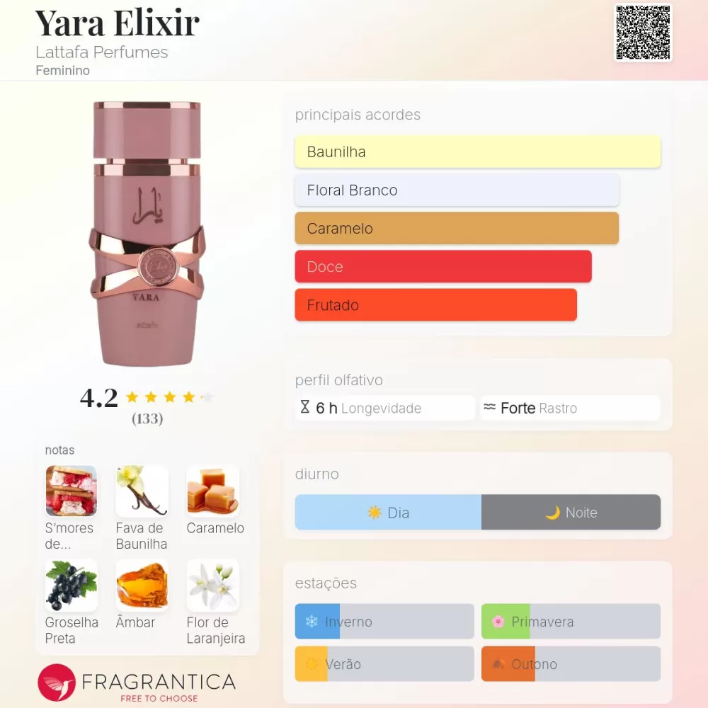 O Yara Elixir da Lattafa é um perfume doce, sensual e envolvente, com toque gourmand floral.